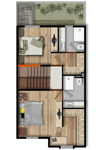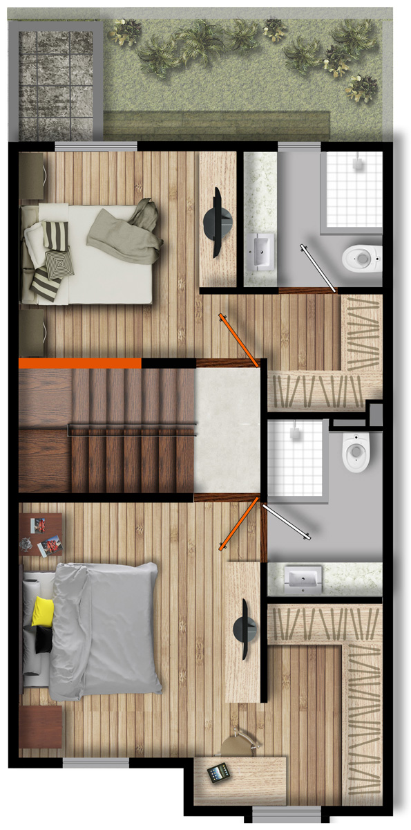 Son hermanas y decidieron independizarse de sus padres. Ambas son profesionistas en grandes empresas y ahora viven juntas. Cada una quiso tener un cuarto grande con vestidor y baño en el Roof Garden hicieron el crecimiento para un cuarto de TV.