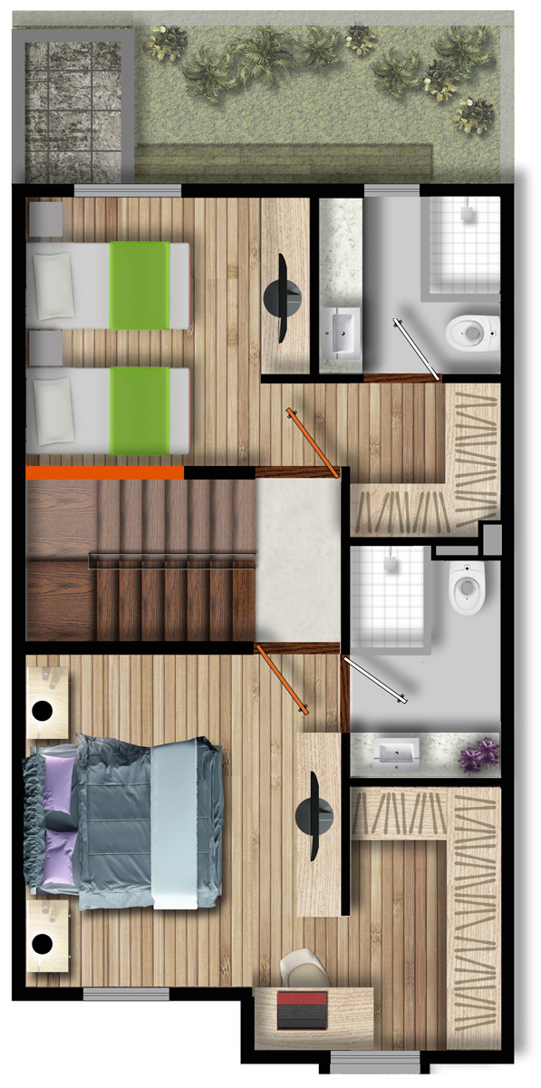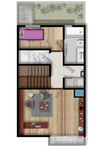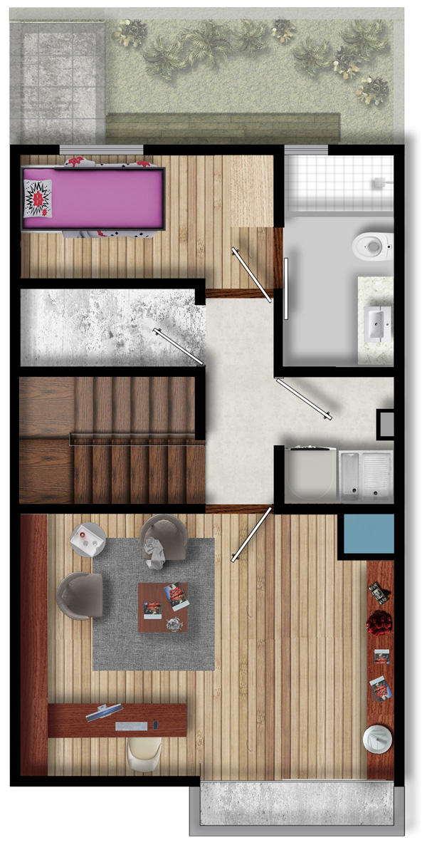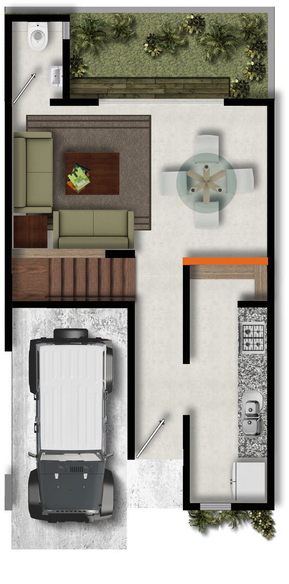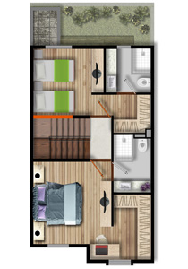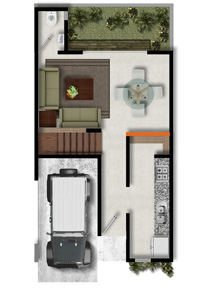 119.2 m2 + 38.7 m2, 3 recámaras, sala, comedor, 3.5 baños, biblioteca, jardín y estacionamiento.